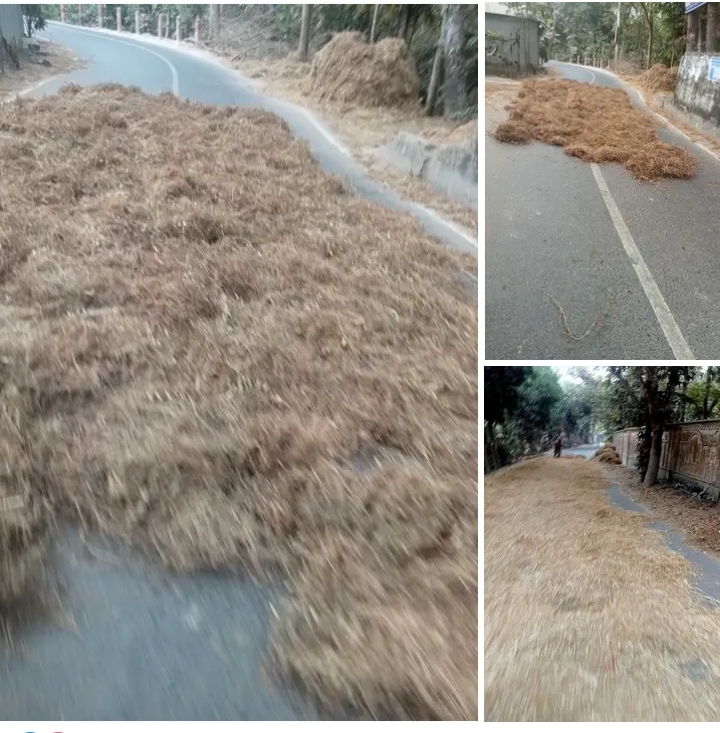 বোয়ালমারীতে সড়কে মসুরি ও ধনে মাড়াই, বাড়ছে দুর্ঘটনার ঝুঁকি—প্রশাসনের হস্তক্ষেপ কামনা