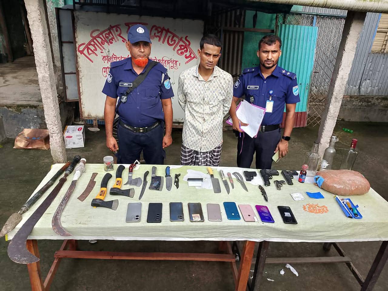 কানাইপুরের শীর্ষ সন্ত্রাসী মাদক কারবারি কুটি মিয়া বিপুল অস্ত্র ও মাদকসহ আটক