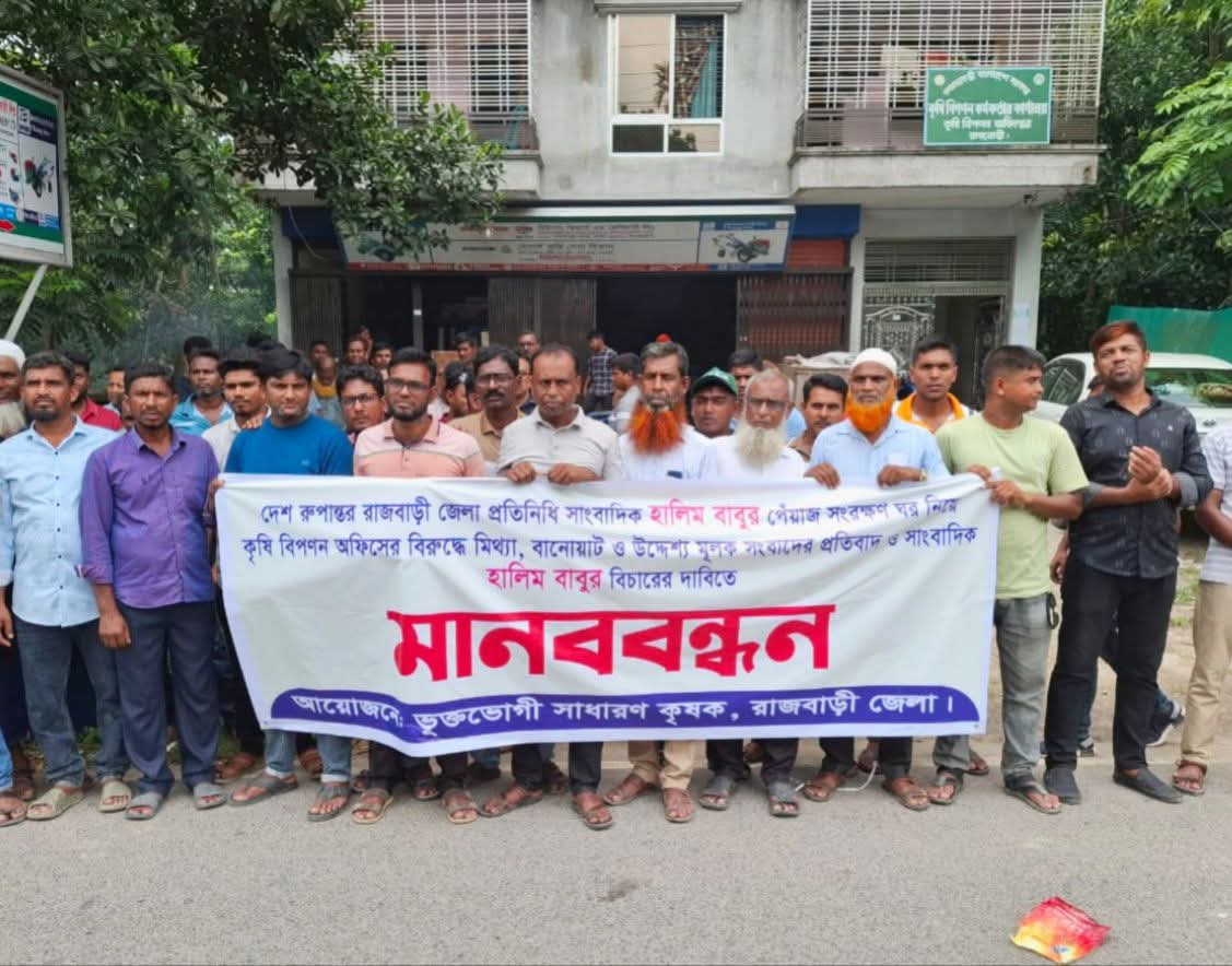 রাজবাড়ীতে মিথ্যা ও হয়রানি মূলক সংবাদ প্রকাশ করায় কৃষকদের মানববন্ধন