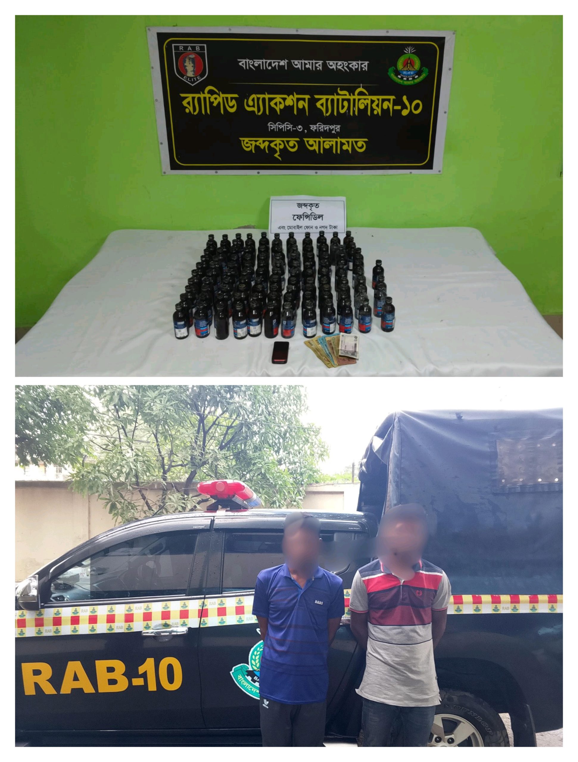 ফরিদপুরে ১১৪ বোতল ফেন্সিডিলসহ র্যাব-১০ কর্তৃক ০২ জন মাদক ব্যবসায়ী গ্রেফতার।