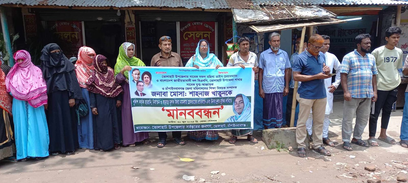 ভোলাহাটে সাবেক মহিলা ভাইস চেয়ারম্যান শাহনাজের নামে দায়ের করা মিথ্যা মামলা প্রত্যাহার ও নিঃশর্ত মুক্তির দাবতে এলাকাবাসীর মানববন্ধন!