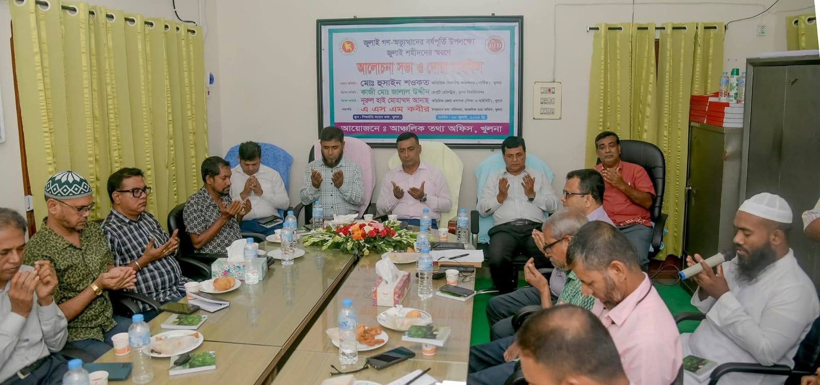 খুলনা পিআইডির আয়োজনে জুলাই শহীদদের স্মরনে আলোচনা ও দোয়া মাহফিল অনুষ্ঠিত।