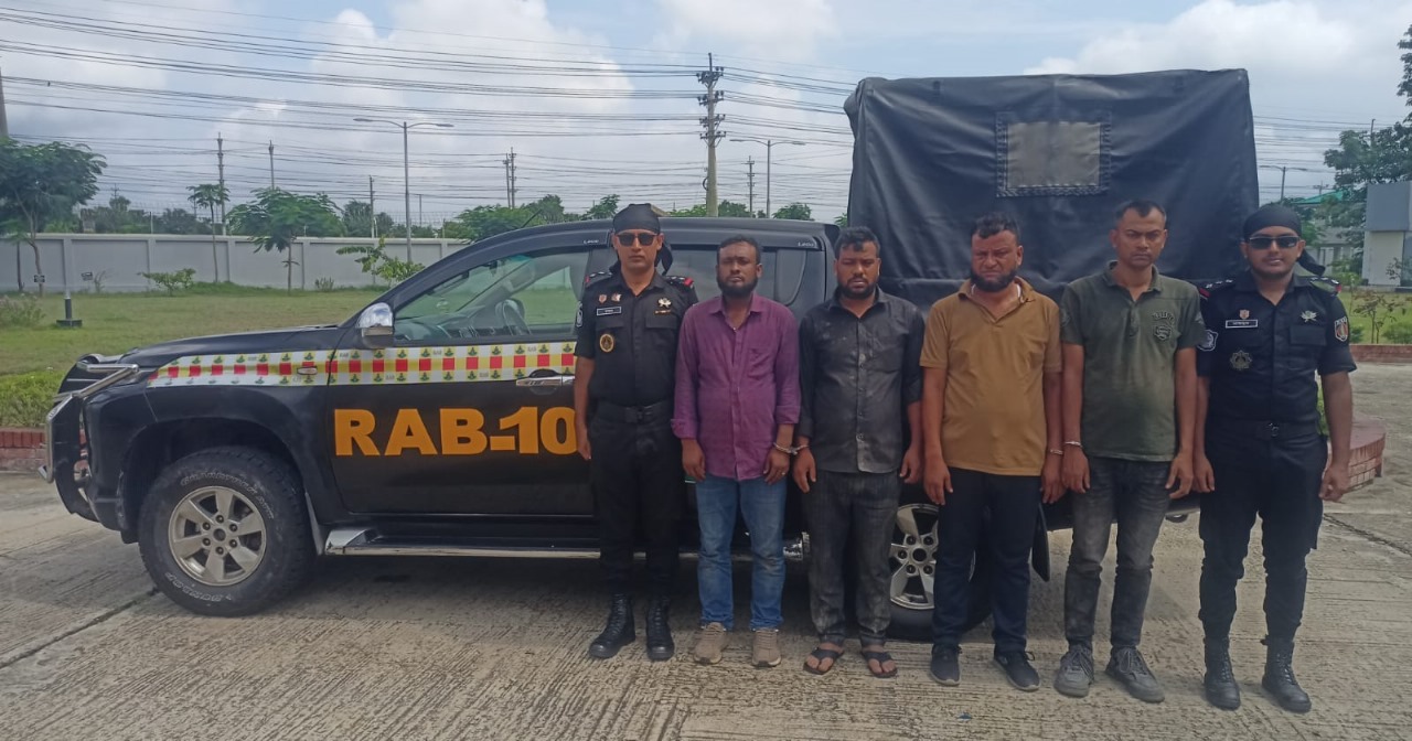 ফরিদপুরের নগর কান্দায় ভুয়া র্যাব পরিচয়ে ডাকাতির সময় ০৫ জন আসামী র্যাব-১০ কর্তৃক গ্রেফতার