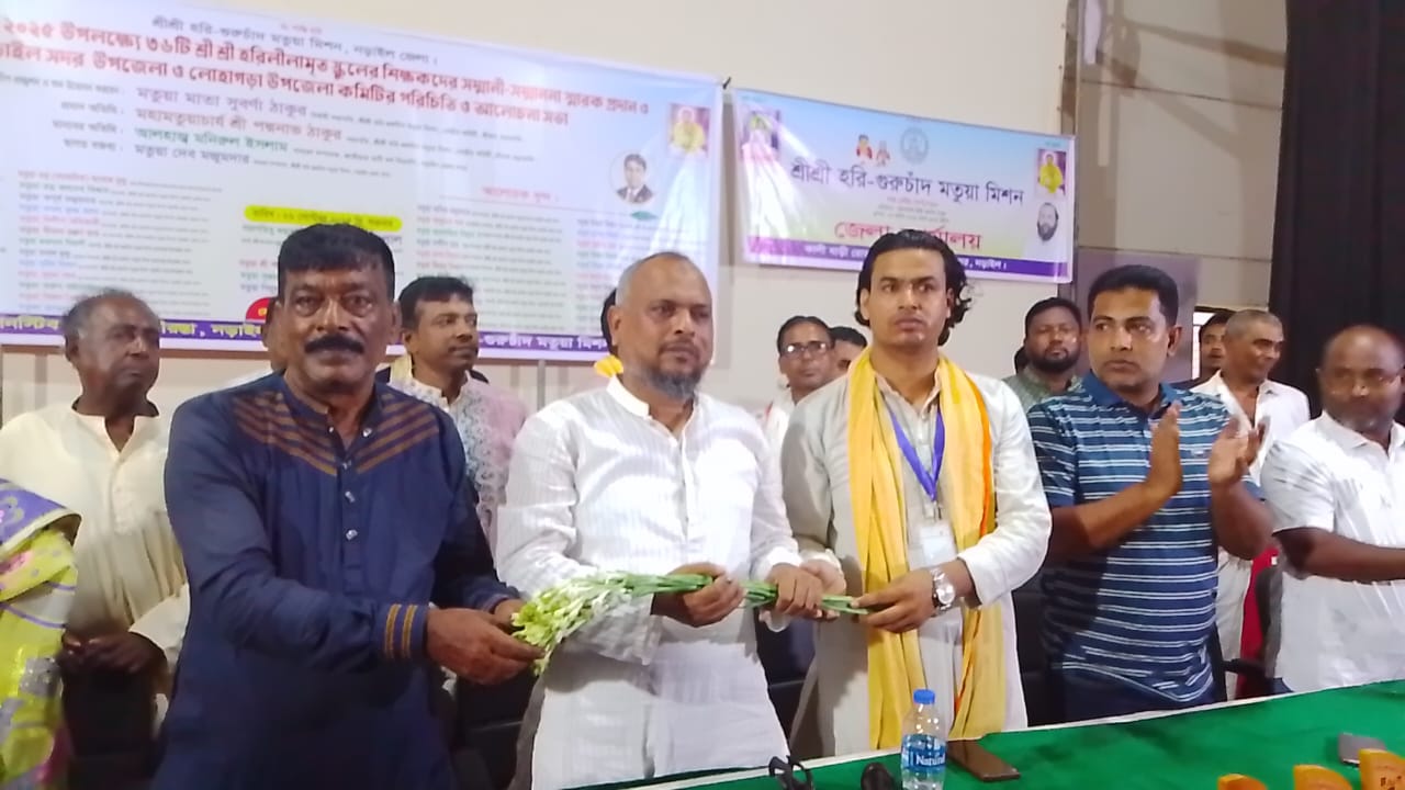 নড়াইল জেলা মতুয়া মিশনের আয়োজনে শারদীয় দুর্গোৎসব ২০২৫ উপলক্ষে ৩৬ টি হরিলিলামৃত স্কুল শিক্ষকদের সম্মানী ও সম্মাননা স্বারক এবং সদর উপজেলা ও লোহাগড়া উপজেলা নব্য কমিটির পরিচিতি সভা অনুষ্ঠিত।