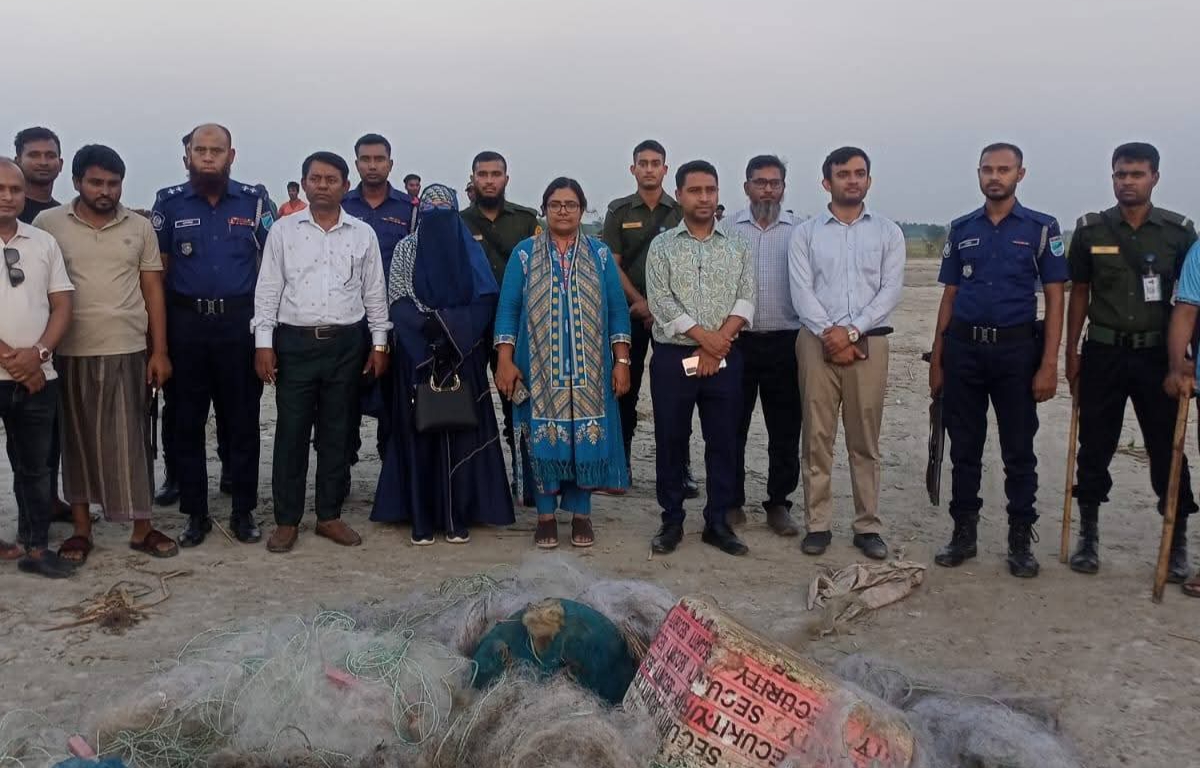 নর্থচ্যানেলে মা ইলিশ রক্ষায় প্রশাসনের অভিযানে ৩০ হাজার মিটার কারেন্ট জাল ধ্বংস