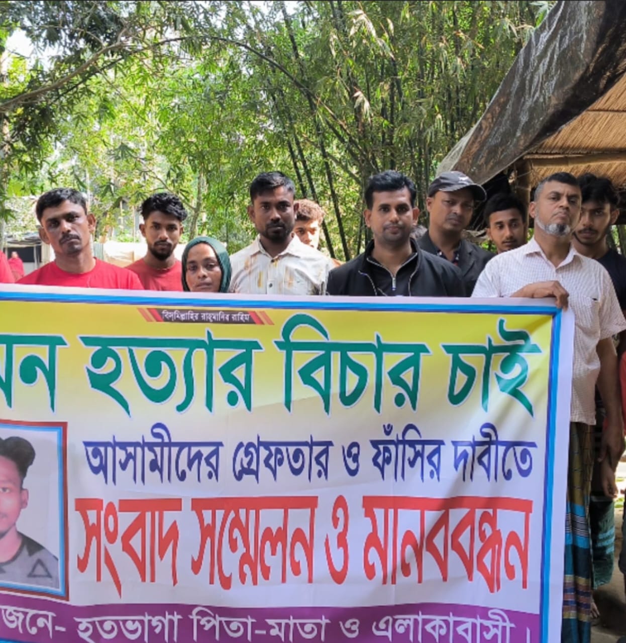 নগরকান্দা উপজেলায় লিমন হত্যার বিচারের দাবিতে এলাকাবাসীর মানববন্ধন অনুষ্ঠিত প্রসঙ্গে।